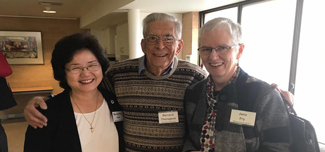 Pictured: The Moderator Rev. Myung Hwa Park, Rev. Bernard Thorogood and the General Secretary Rev. Jane Fry